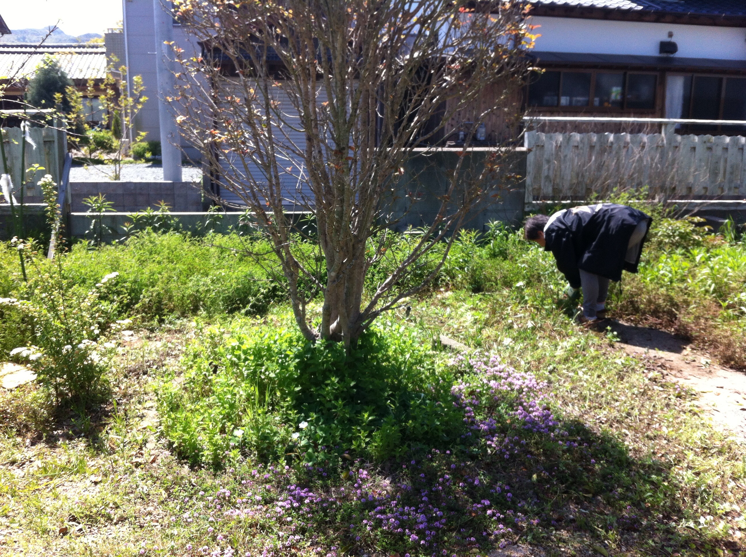 昨日は良いお天気だったので、店の庭いじり、というか草むしりに出かけました^_^;