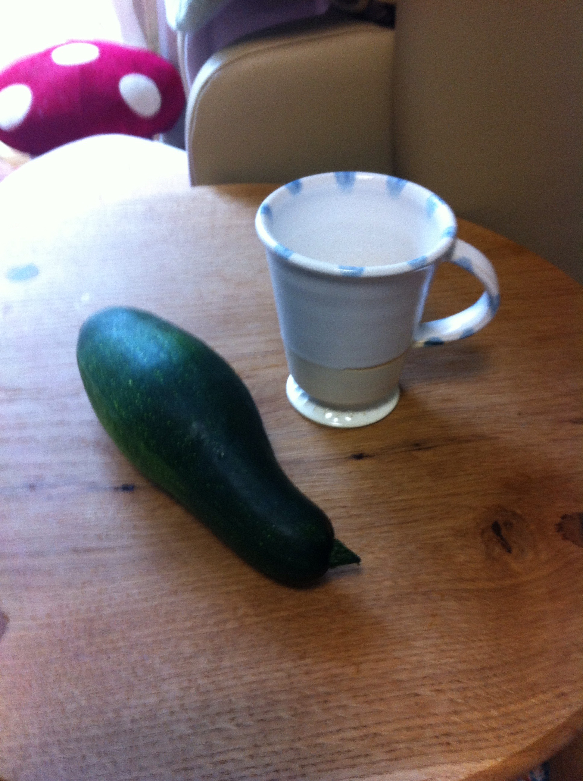 夫が窯焼きのために数日目を離していたら、ズッキーニが丸々と太っちょさんに(笑)